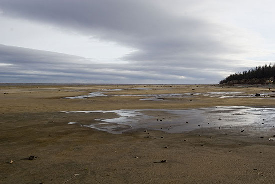 Фото: пляж.Пустынный пляж в окрестностях Салехарда. Как ни странно, и на крайнем севере люди загорают - там даже есть деревянные зонтики от солнца. Фото сделано глубокой осенью. Кто-то скажет - это просто лужи. А на самом деле - маленькие озера, каких много на севере.