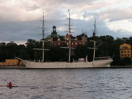 Если бы не рыбак в каске, можно было бы подумать что это Санкт Петербург. Но это Швеция - там все плавают по рекам в касках..