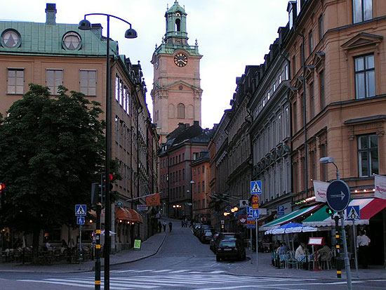 Тихая шведская улочка. Люди попивают кофеек или что покрепче.